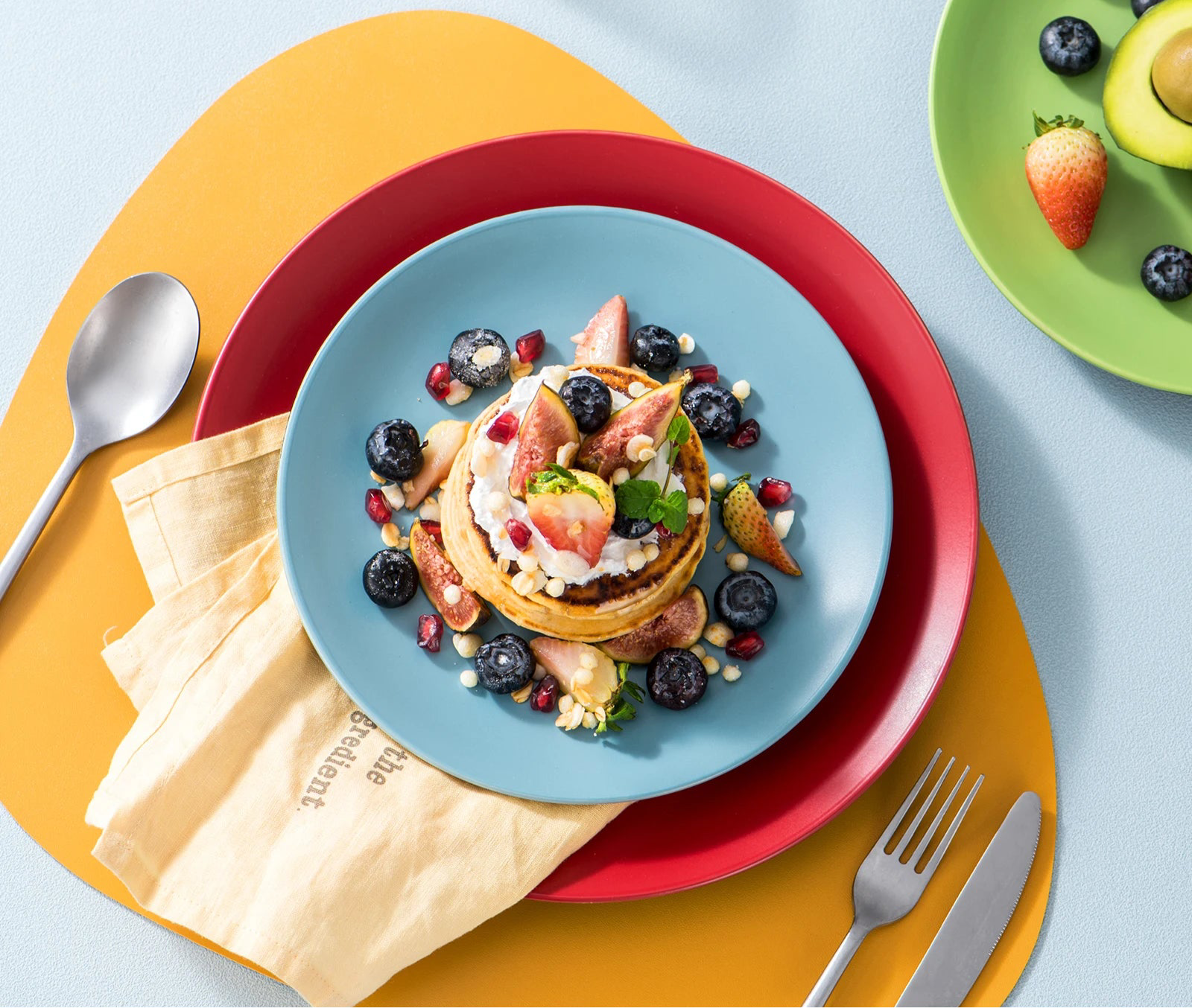 Le service ALLERGO illumine chaque repas grâce à sa palette vibrante de couleurs : rouge, jaune, vert et bleu.