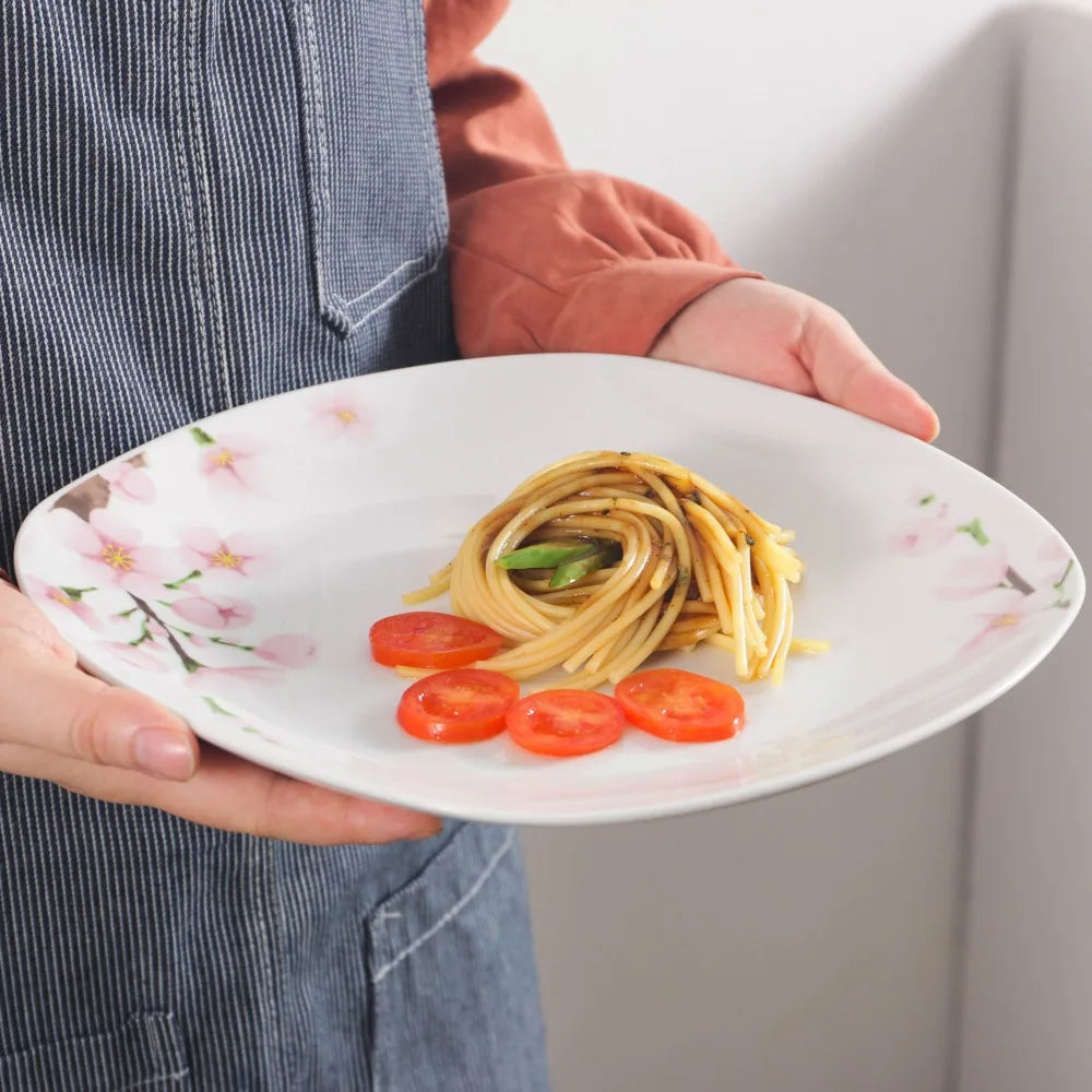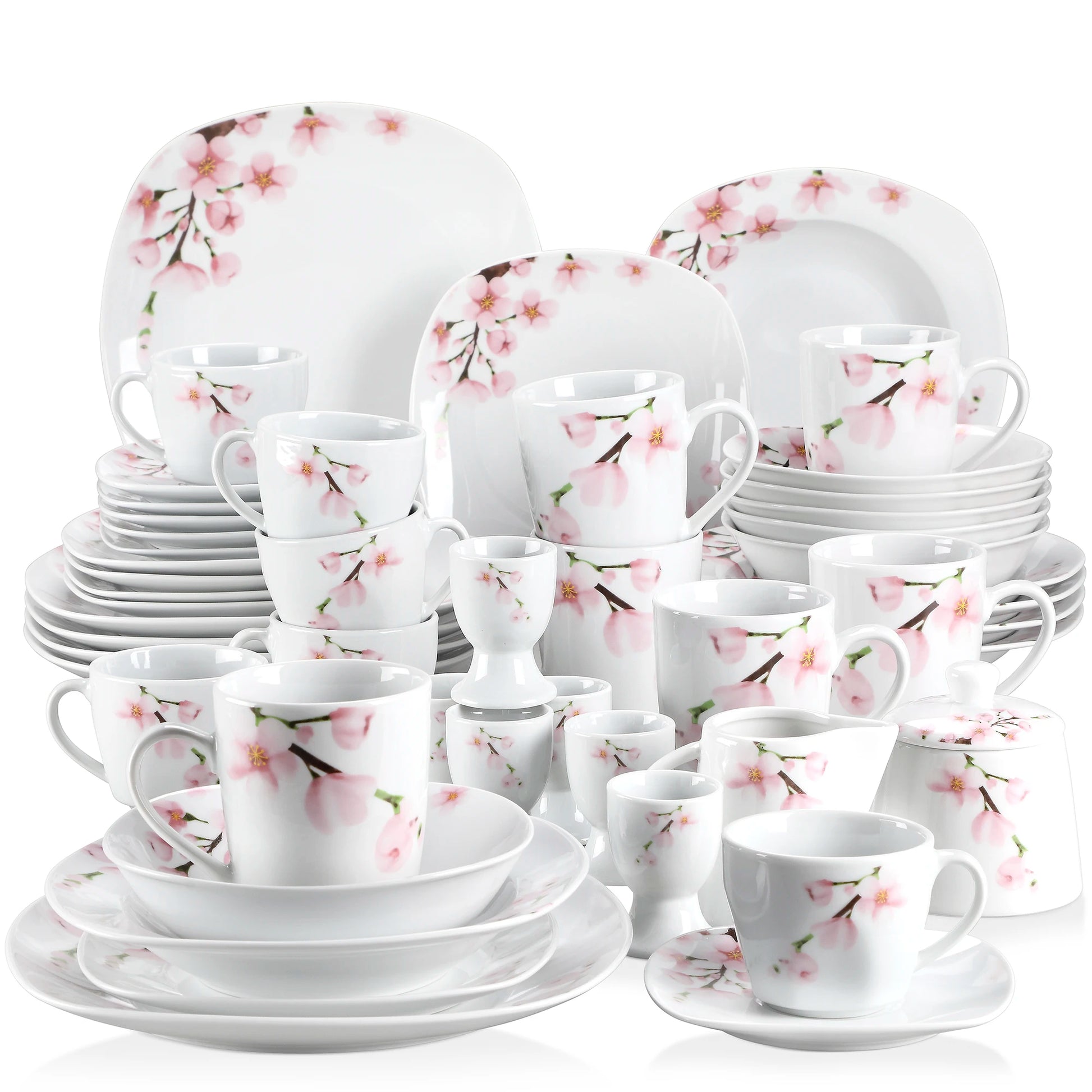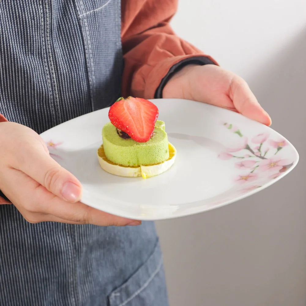 Les courbes douces des assiettes carrées et la délicate finition florale apportent une ambiance chaleureuse et raffinée à chaque repas.