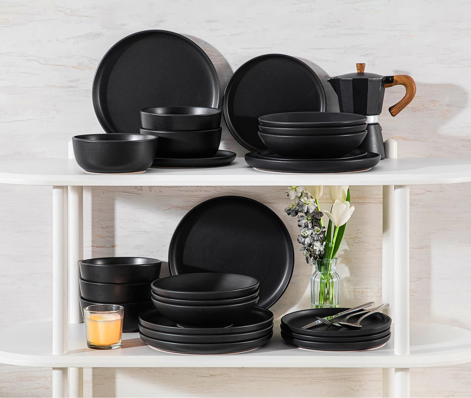 Le service GLAZ sublime ta table par son style contemporain et sa finition noire élégante.