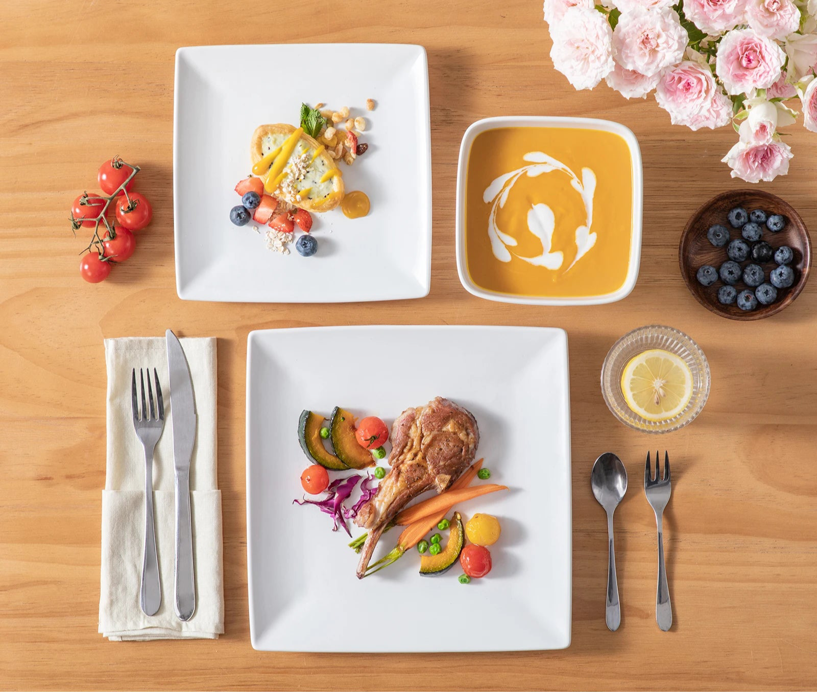 Sa forme carrée épurée et sa finition brillante en font une vaisselle à la fois moderne et élégante, parfaite pour sublimer vos repas du quotidien comme vos dîners sophistiqués.