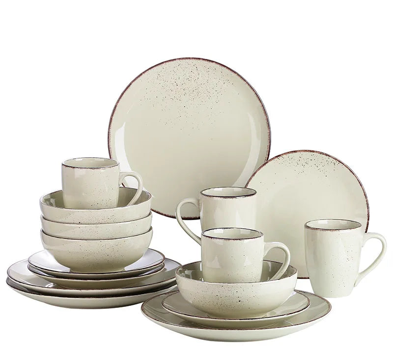Ses tons beiges délicatement mouchetés et ses bords bruns vieillis apportent un charme artisanal unique à votre table.