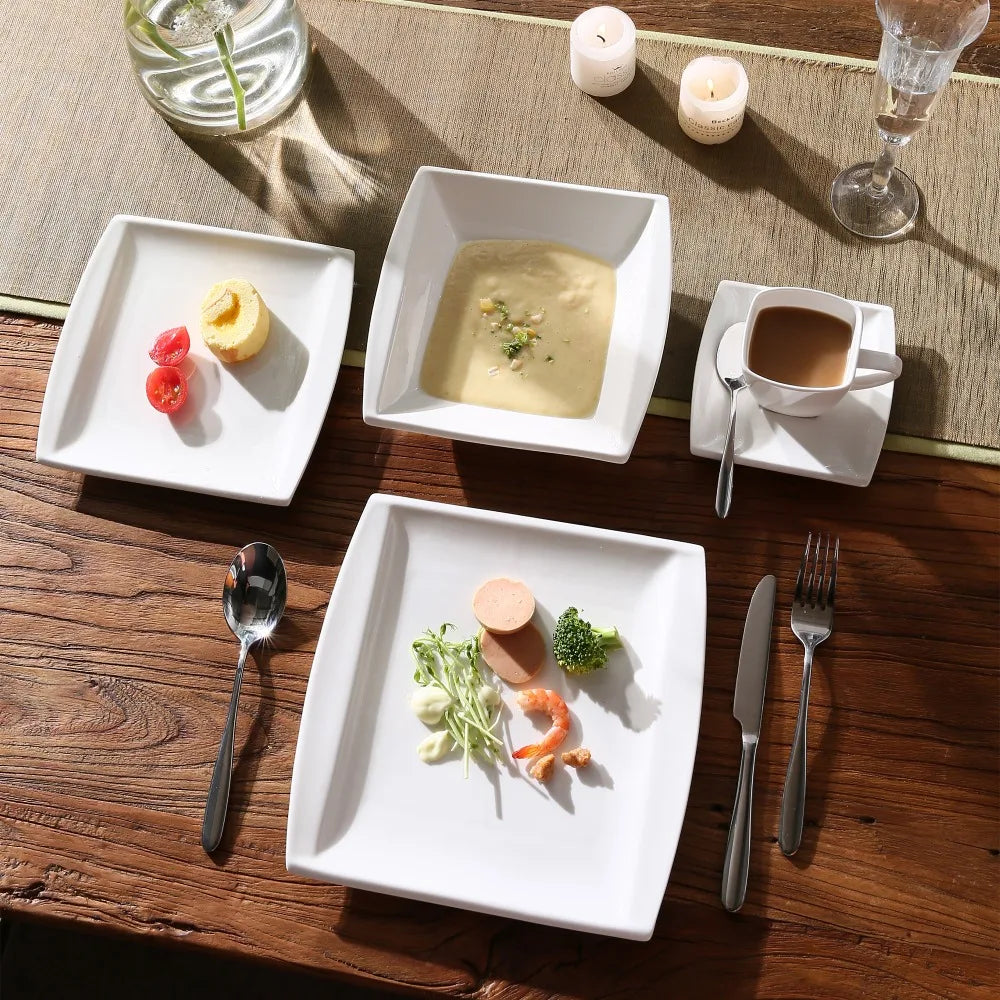 Son design carré moderne et sa finition immaculée en font le choix idéal pour sublimer vos repas.
