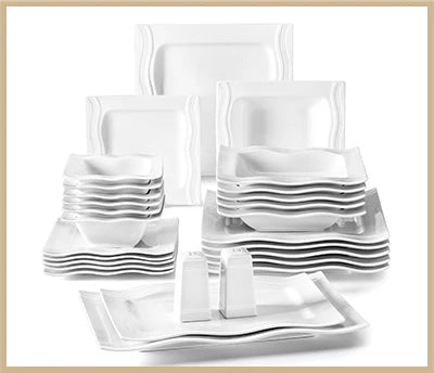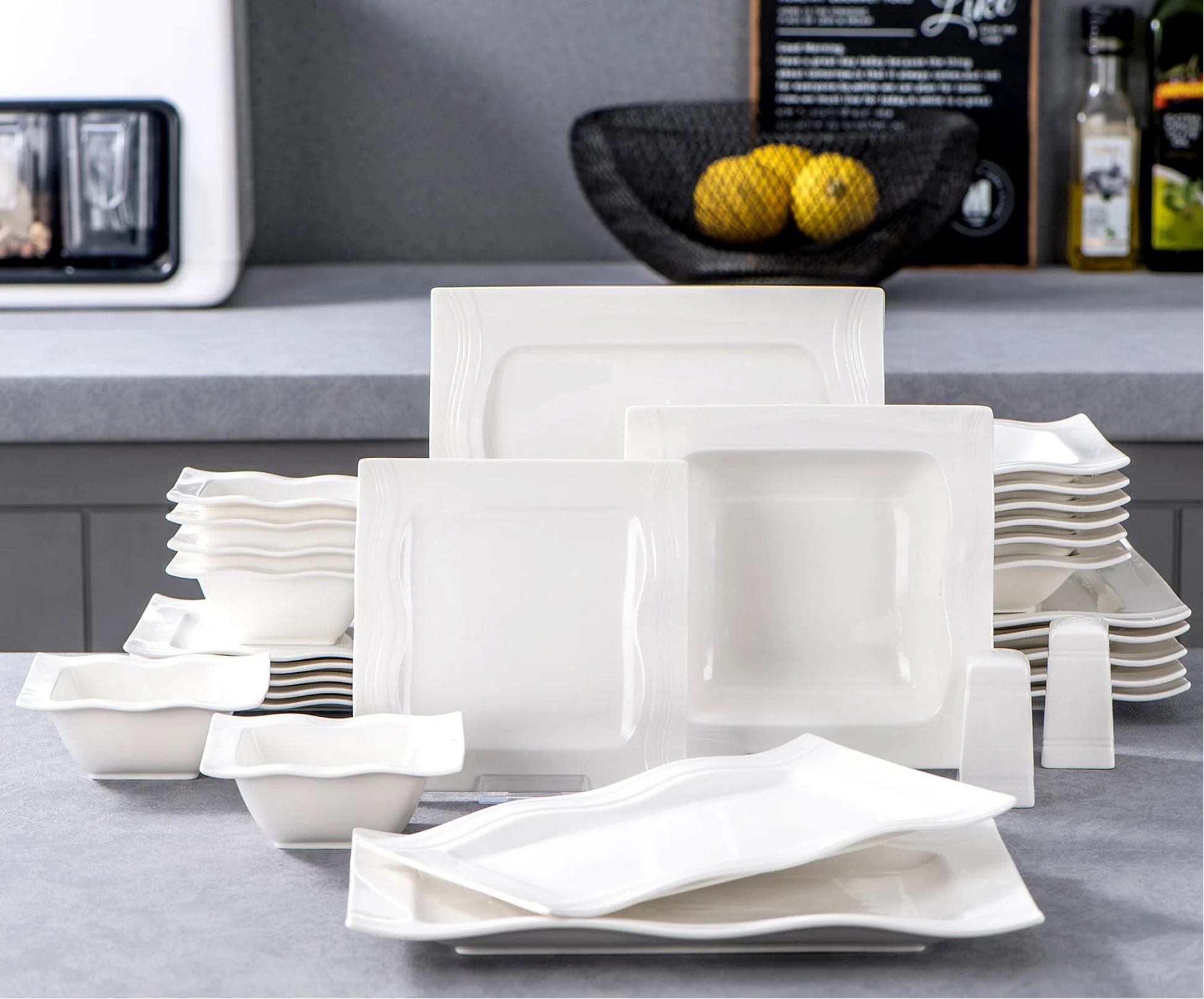 Vaisselle pocelaine 6 personnes - MARIO - 28 pièces