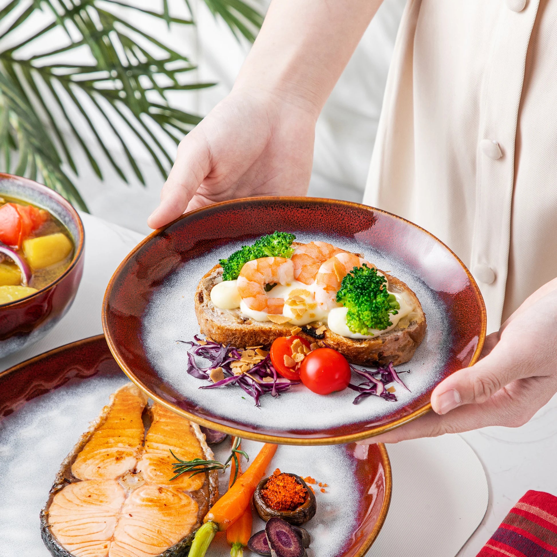 Le service STARRY attire le regard avec son design unique mêlant rouge profond et gris perle, pour une table à la fois audacieuse et raffinée.