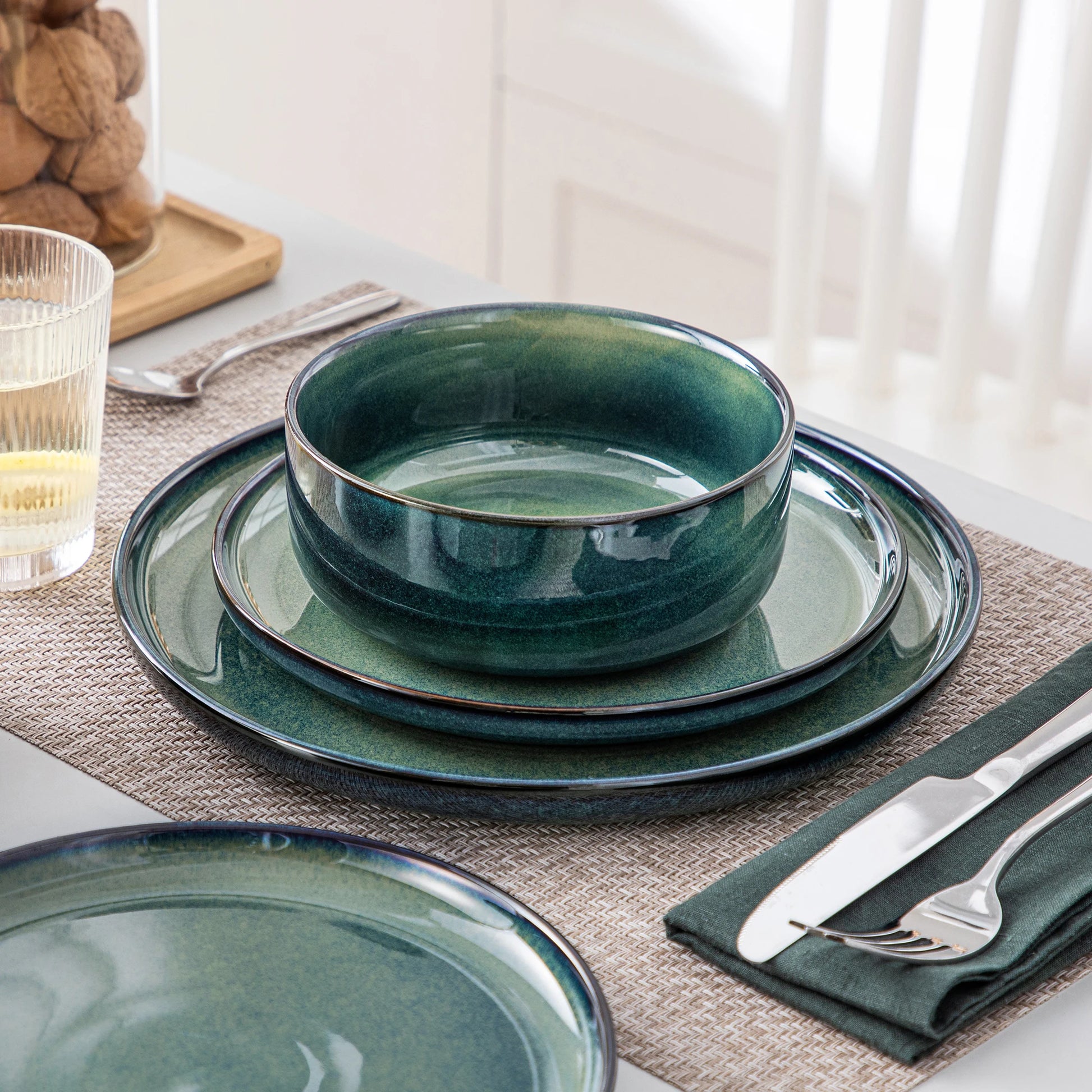 Sa teinte verte profonde et ses reflets émaillés apportent chaleur et caractère à votre table, tout en s’adaptant à tous les styles de décoration.